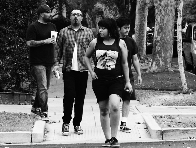 Guitarist Bobby Khan met vocalist Sophia Flores through this very happenstance. The two regularly attended similar musical events that danced along the lines of punk, thrash and fast-paced rock ‘n’ roll. Khan eventually introduced her to his band the Sex Killers, a two-piece group that also included drummer JB Thomas.