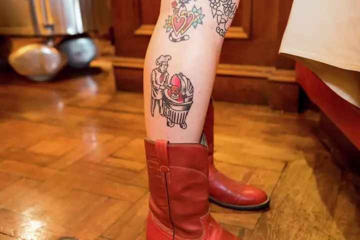 Although he doesn’t have any SF food-related tattoos on his body yet, Seigel said he was stoked to tattoo his HOPR design on Kowalski because he knows she loves the restaurant so much.